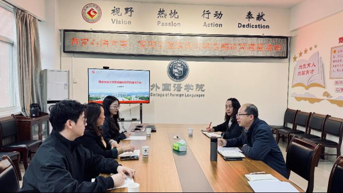 为推动高校间在区域国别学学科建设领域的交流与合作,10月14日下午,西安石油大学区域国别研究院执行院长刘辉教授一行三人应邀来我校国别区域研究院开展座谈,座谈会在高新校区立心楼419会议室举行,外国语学院、国别区域研究院院长李伟、副院长刘敏参加了座谈会。