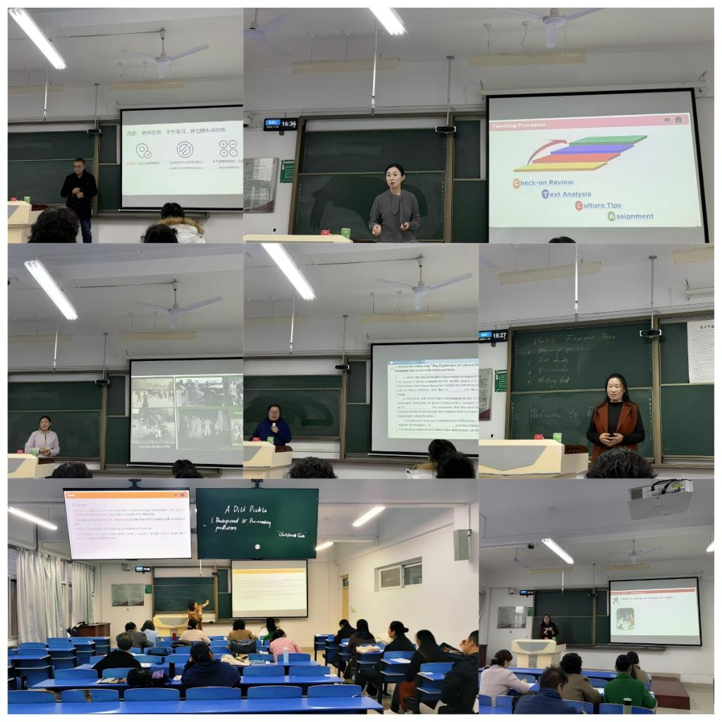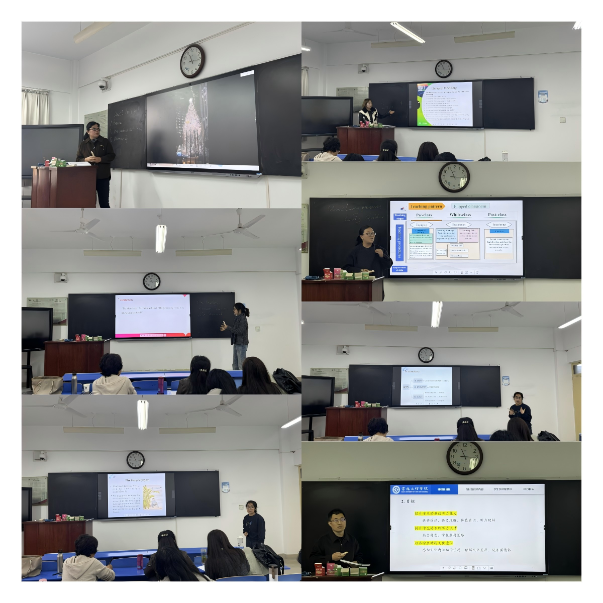 参赛教师们准备充分,讲授内容充实,展示出较高的专业素养与教学热情。多位教师的PPT制作生动详实,图文并茂,能有效辅助教学内容的呈现;课堂组织环节清晰,活动设计灵活多样,充分体现了语言类课程的互动性与开放性。评委们一致认为,本次比赛整体水平较高,多数教师讲解思路清晰、语言流畅、表达自然,能自如运用多媒体和网络资源,教学手段现代化、感染力强。教师们普遍具有良好的英语口语表达能力和课堂亲和力,能够通过提问、讨论、任务驱动等方式引导学生积极参与,使课堂氛围生动活跃。教师还巧妙地将思政元素融入教学内容之中,将语言学习与价值引领相结合,使课堂既具知识深度,又富人文温度,展现了外语教师以文化人、以德育人的教育担当。