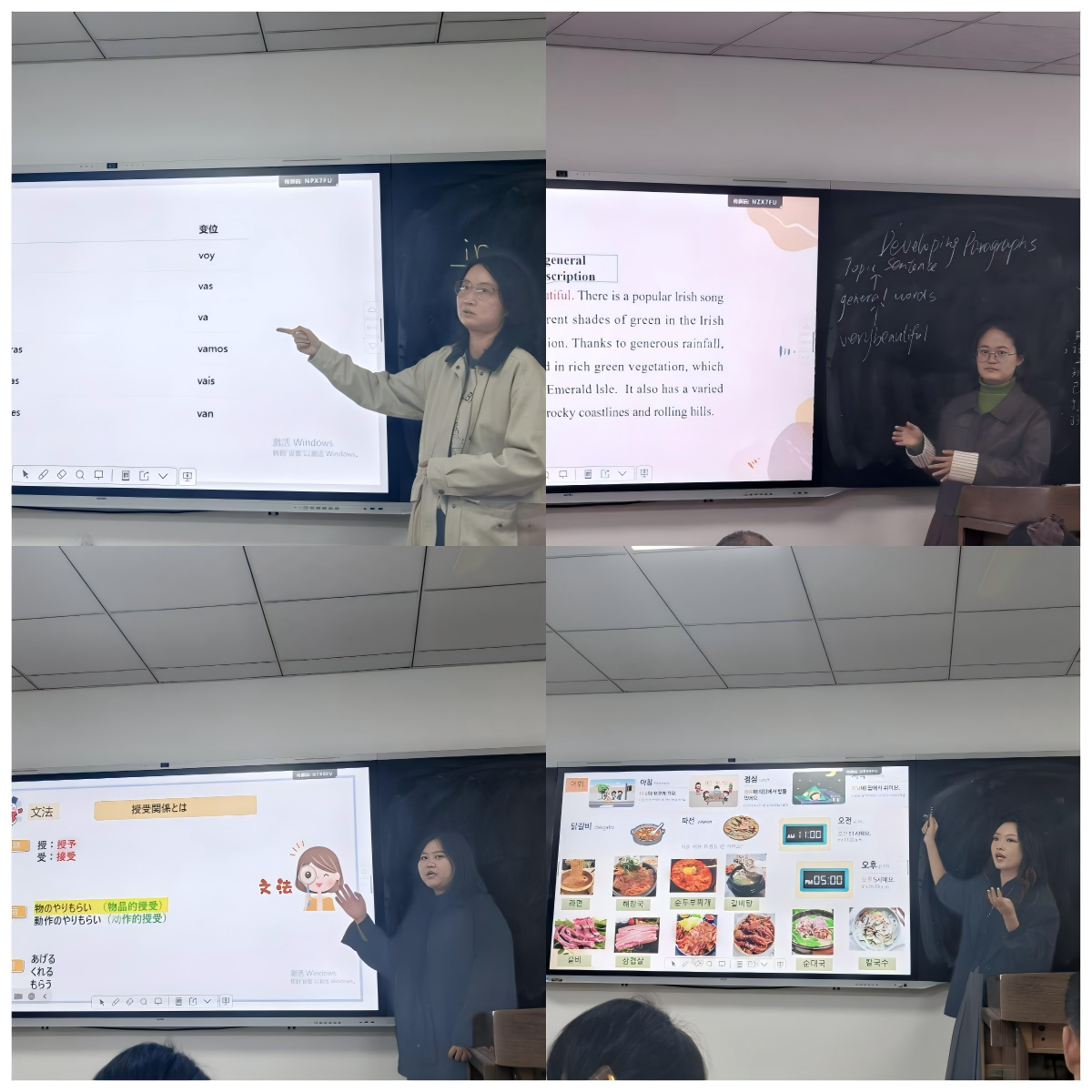 外国语学院教师讲课竞赛的成功举办,充分展示了我院教师的专业素养、教学热情与创新精神,达到了“以赛促教、以赛促改、以赛促研”的预期目标。通过此次活动,教师们在教学理念、课堂设计与思政融合方面均得到了新的启发与成长,也为学院打造高质量课堂、建设高水平师资队伍注入了新的动力。未来,外国语学院将继续坚持以教学质量为中心,以课堂创新为抓手,以教师发展为重点,努力建设一支理念先进、能力突出的教师队伍,为培养具有国际视野与家国情怀的复合型外语人才。(外国语学院 文/冯琳 图/黄媛、王萌、王倩、王勇 审核/李伟)