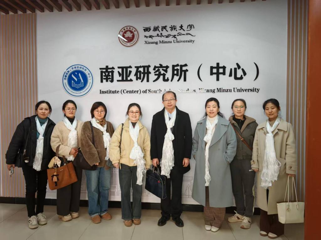 12月10日,外国语学院院长李伟一行赴西藏民族大学外语学院(南亚学院)开展调研交流。西藏民族大学外语学院副院长郭彧斌、英语专业教研室主任李葆卫、教育硕士(学科教学•英语)学位点负责人张宁、MTI中心负责人弋睿仙、南亚研究所副所长刘星君等参加座谈。