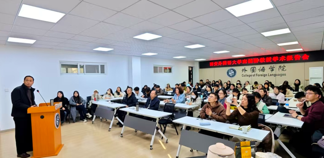 11月19日下午,西安外国语大学南健翀教授应邀莅临我院,以《灵魂的相遇:中英文学的思想潜流》为题开展专题讲座,吸引学院众多师生到场聆听、参与交流。现场互动热烈,学术氛围浓厚。